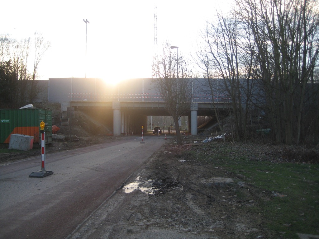 (Onze straat is eindelijk afgesloten, maar de bovenbruggen hebben nog geen panelen)