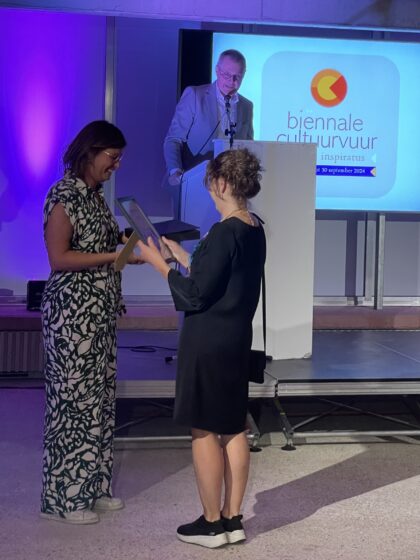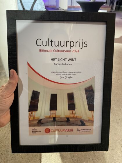 Vrijdagavond mocht ik blij verrast de Cultuurprijs, uitgereikt door Vlaams minister-president, Vlaams minister van Cultuur Jan Jambon in ontvangst nemen voor mijn installatie HET LICHT WINT op de Biënnale Cultuurvuur 2024.