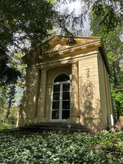 De tempel ligt vlakbij ingang Meise Dorp, verscholen in het groen.