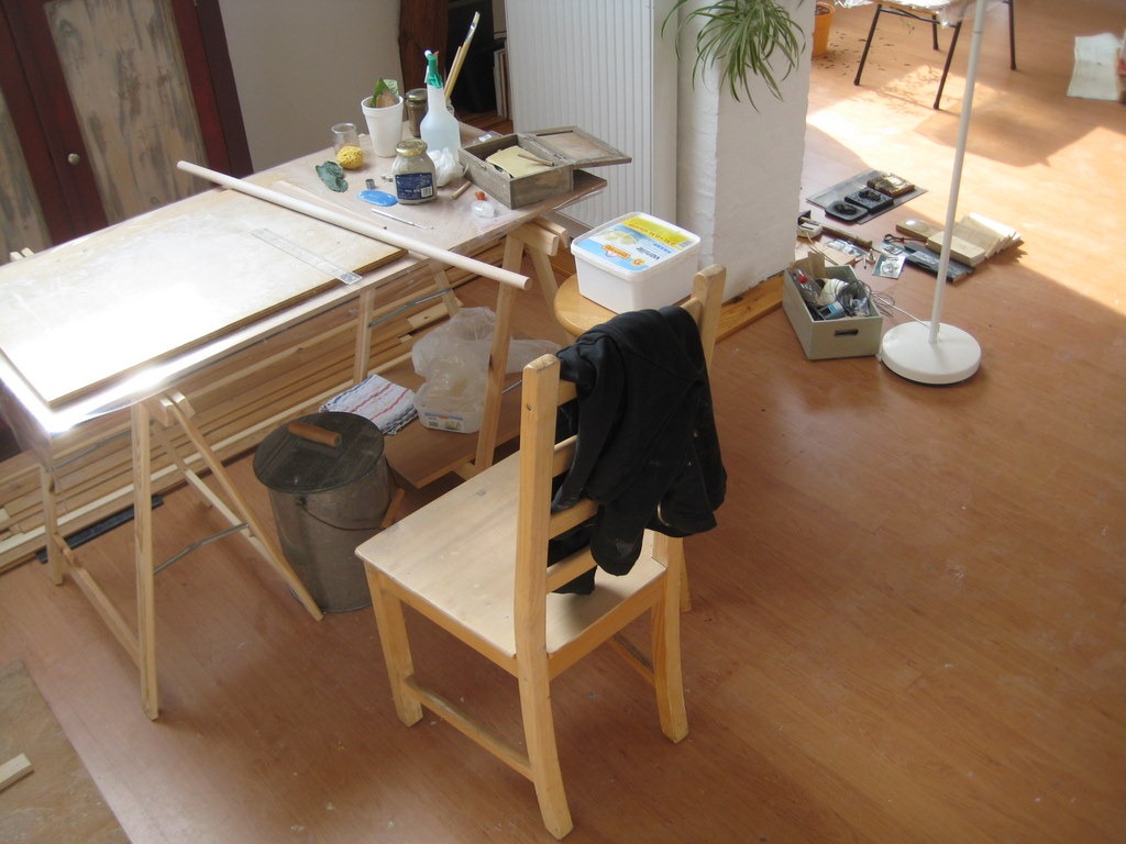 …en ik ben enorm allergisch voor stof. Gevolg: mijn atelier is in al die jaren nog nooit zoveel gepoetst geweest als de afgelopen 2 maanden. Gelukkig is het binnenkort mooi weer, dan zet ik de tafel in de tuin en kan ik daar gaan smodderen zoveel ik wil, want smodderen, dààr ben ik goed in