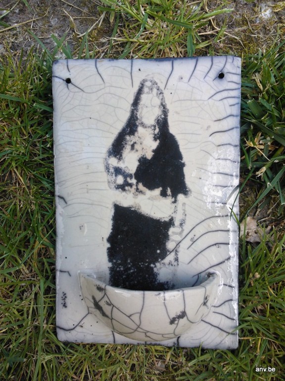 Ik had een idee, maar nog veel te weinig technische kennis om het ook te kunnen uitvoeren. Gelukkig kan een mens in het keramiekcentrum in Genk technische begeleiding krijgen, daar heb ik dan ook dankbaar gebruik van gemaakt… alleen had ik dat beter al een half jaar geleden gedaan, want met kennis alleen kom je er natuurlijk niet, ervaring is ook heel erg mooi mee genomen. Ik zou het betreffende “ding” opnieuw maken moest ik er nog de tijd voor hebben (al heb ik er wel al direct 2 van gemaakt, en daar bovenop nog 2 x een plan B), maar aangezien keramiek moet drogen voor het de oven in kan, is mijn tijd op. Misschien maar goed zo, ik heb namelijk al genoeg nieuwe St-Barbara’s gemaakt dit jaar om daar op te hangen, ik heb gisteren nog 7 kleintjes geglazuurd weggebracht om te laten bakken… en van die ben ik gelukkig redelijk zeker dat ze goed gaat zijn :).
