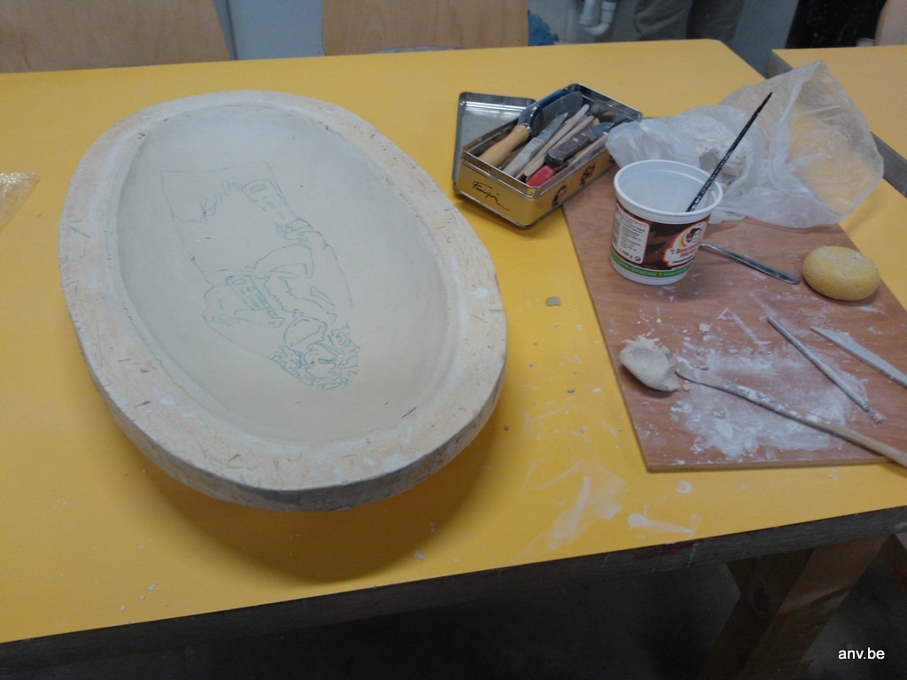 Wat ik niet vergeten was, was hoeveel vuiligheid zo klei in mijn schildersatelier nalaat, want het lag nog overal verspreid, in elke hoek en elke kier. Dus besloot ik na mijn laatste atelierschoonmaak om voortaan uit te wijken naar het FLACC (kunstenaarswerkplaats) voor het maken van mijn keramiek, toch voor het nat werk.