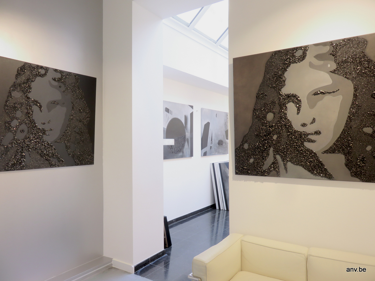 This picture was taken a week ago. In meanwhile there are many more works on the Mine-Art groupshow “Heritage”, but you have to go Casino Waterschei to see them.